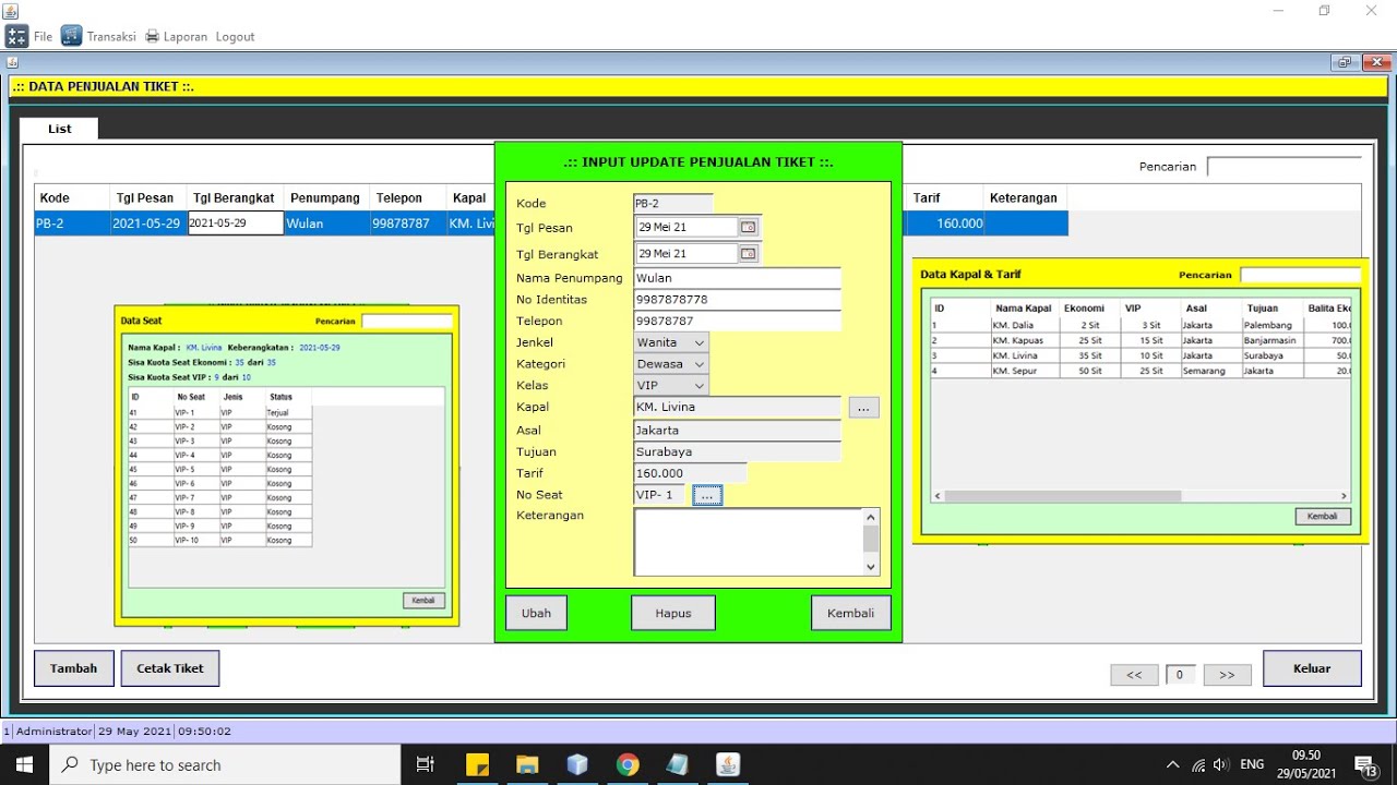 14-Source Code aplikasi pemesanan tiket kapal laut Java & Mysql - YouTube