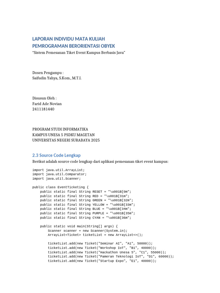 Sistem Pemesanan Tiket Event Java | PDF | Computer Programming ...