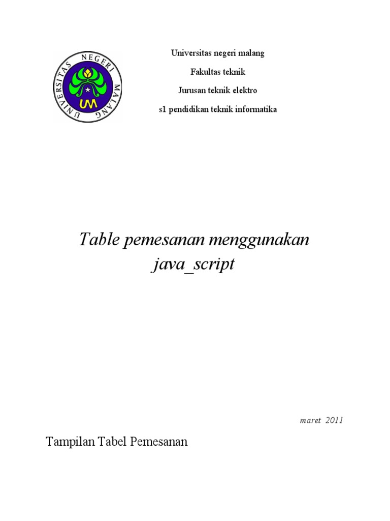 Table Pemesanan Menggunakan Java - Script | PDF | Java Script ...