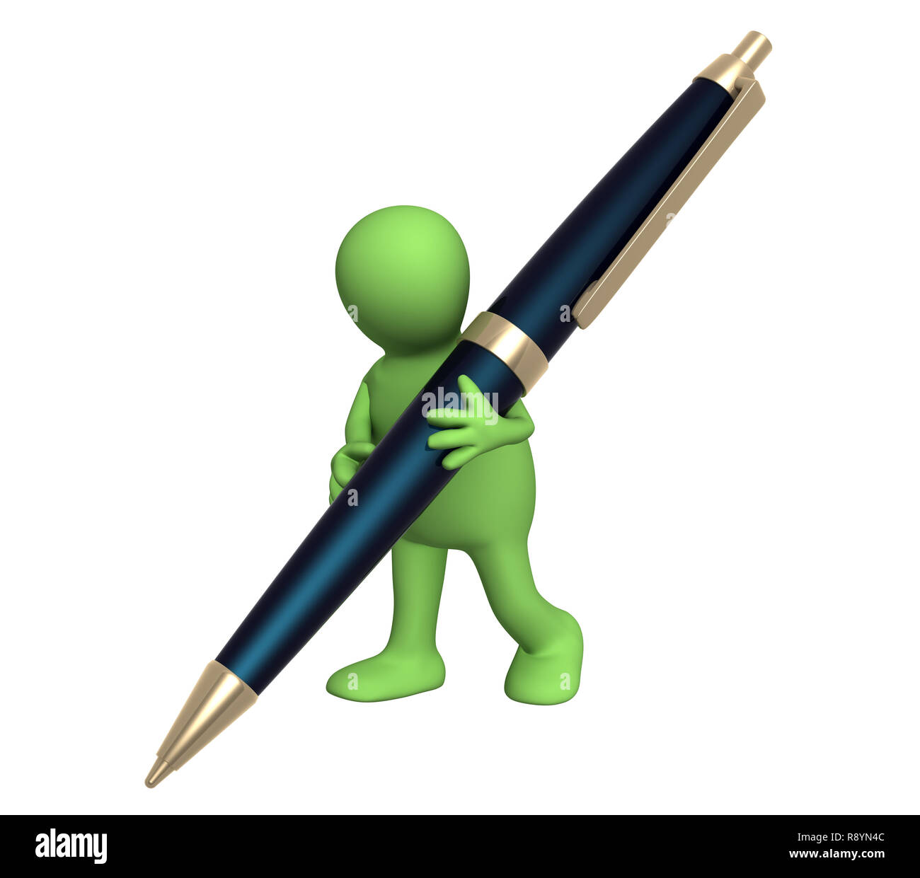 3d puppet with a pen. Object over white Stock Photo - Alamy