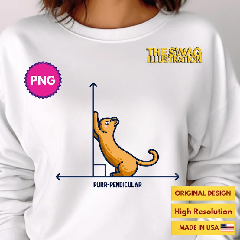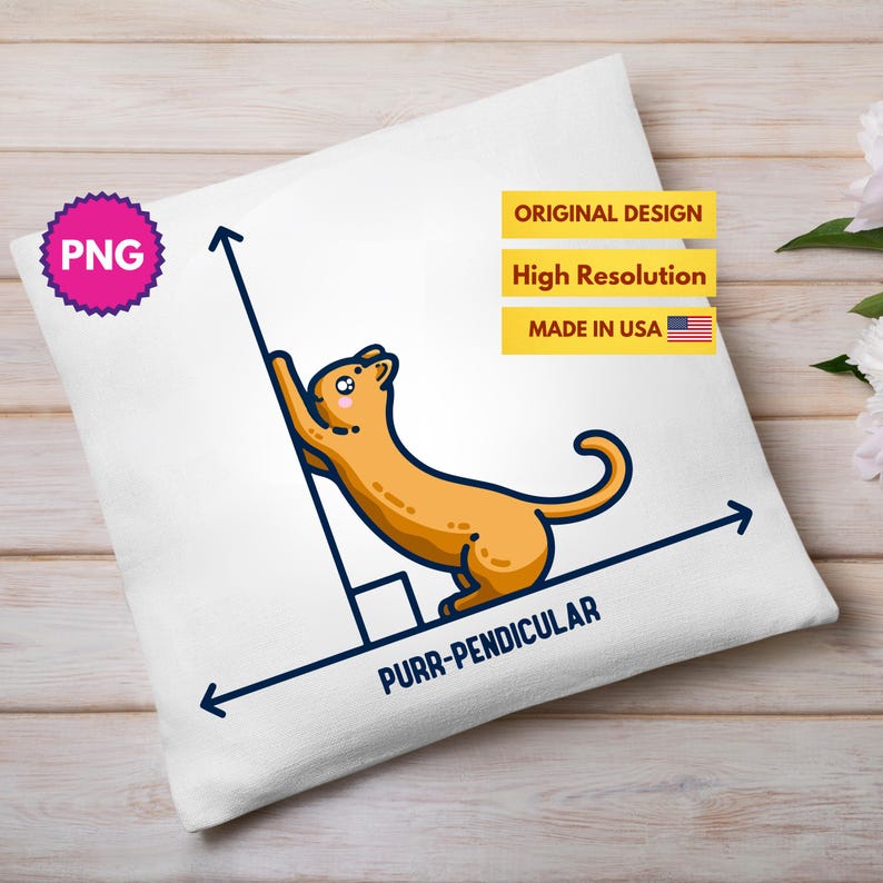 Purr-pendicular Cute Maths Cat PNG, Cute Kitten Math Pun Digital File ...