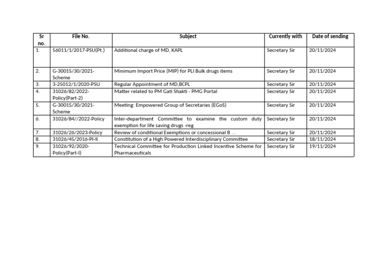 List of Pending Files | PDF