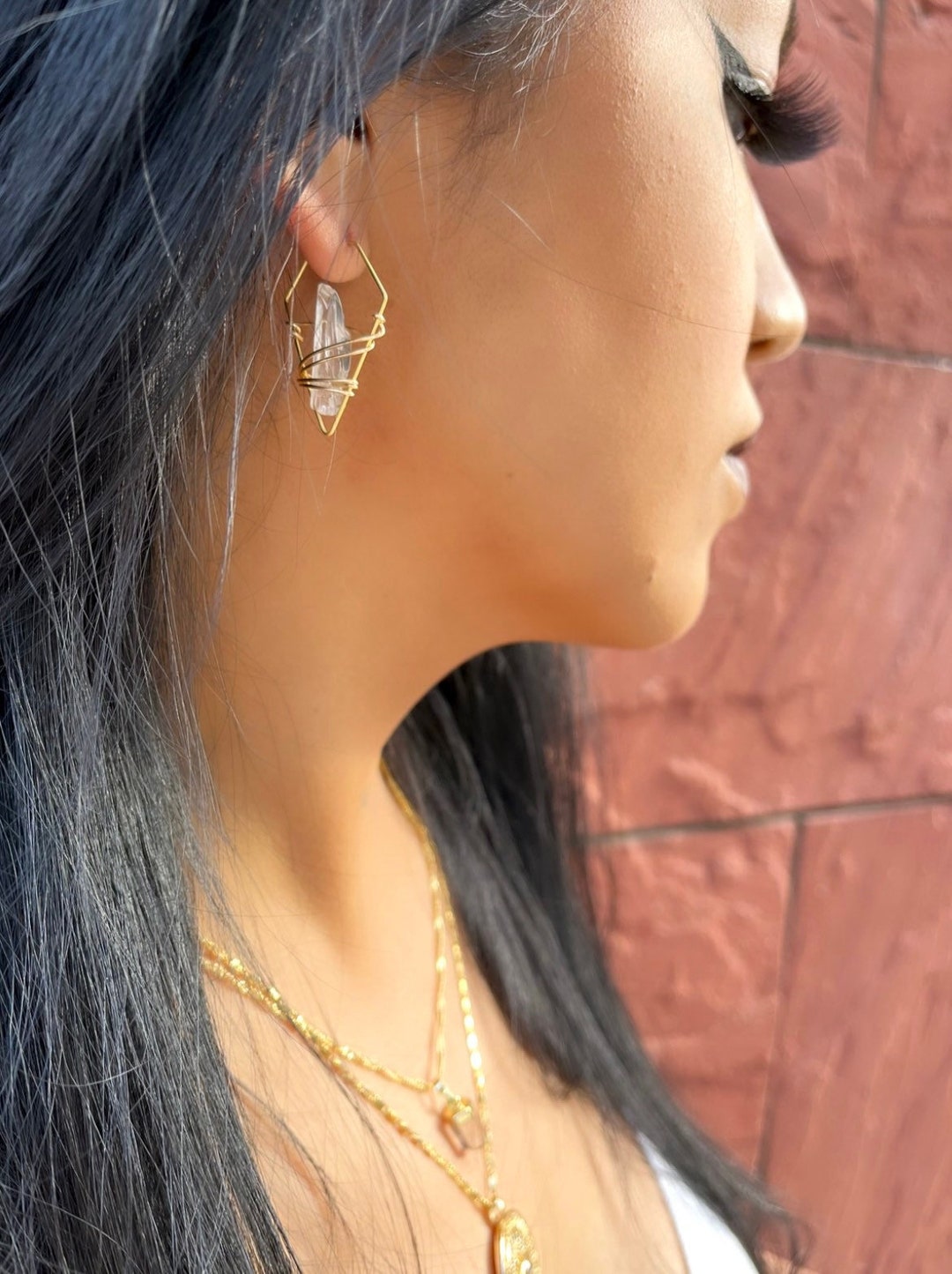 Gold Pentagonal Quartz Point Wire Wrapped Crystal Earrings - Etsy