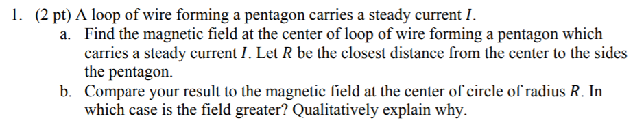 Solved 1. (2 pt) A loop of wire forming a pentagon carries a | Chegg.com