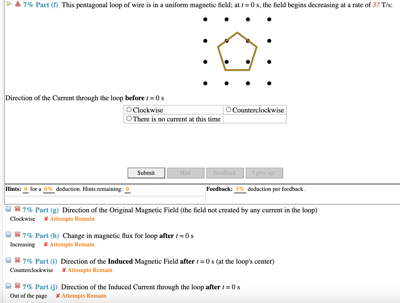 Solved 4 7% Part (f) This pentagonal loop of wire is in a | Chegg.com