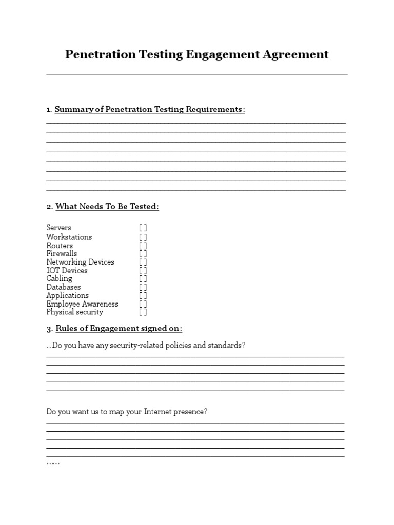 Penetration Testing Agreement Template Form - Fill Out and Sign ...