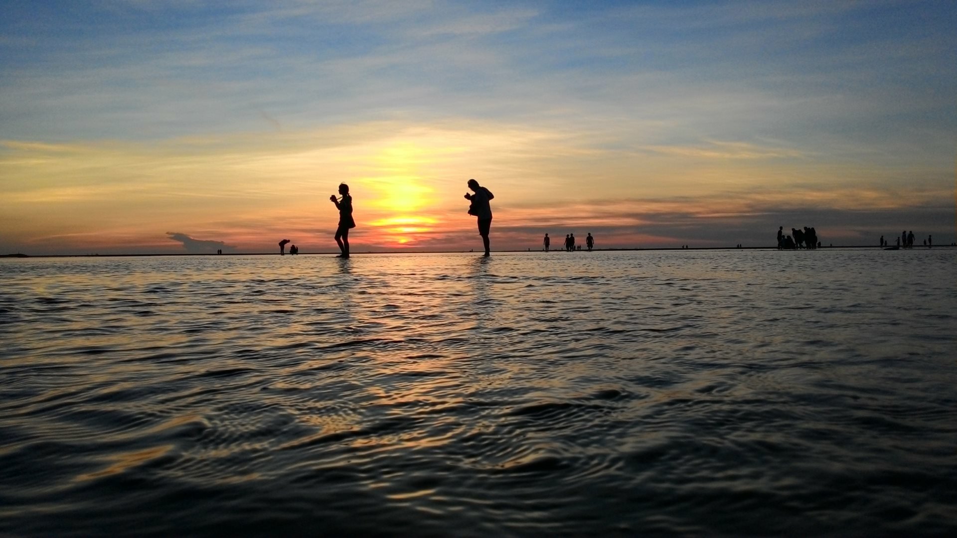 Sunset Silhouettes: Vibrant People Photography in HD Wallpaper