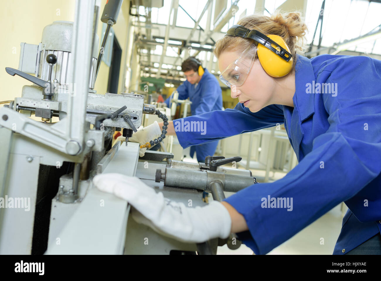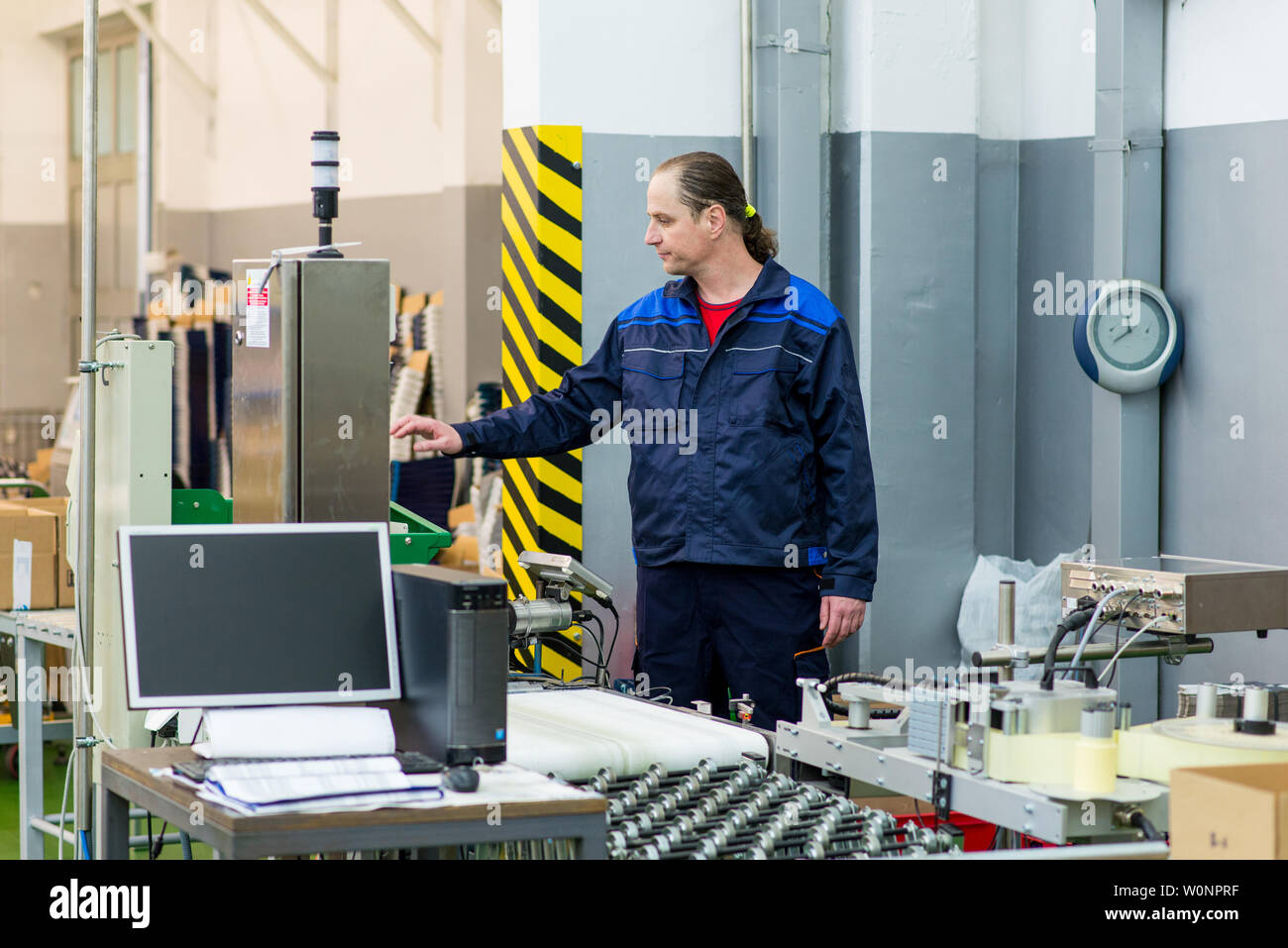 worker using machinery in factory Stock Photo - Alamy