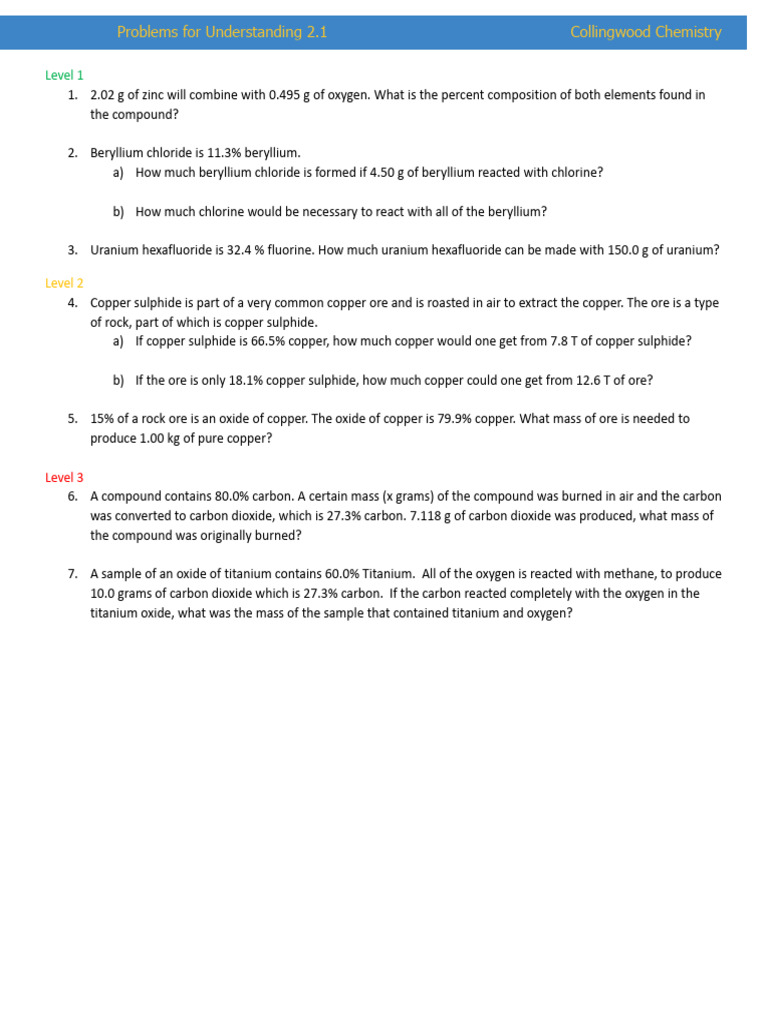 7.6 Percent Composition Problem Set by QChemistry | TPT