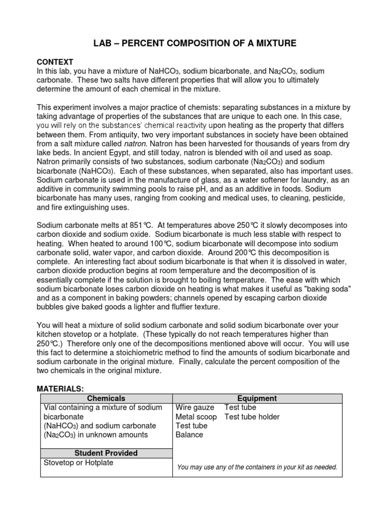 Percent Composition Mixture Lab | PDF | Sodium Bicarbonate | Sodium ...