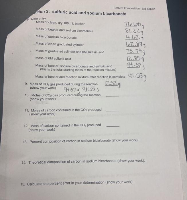 Solved Percent Composition - Lab Report ction 2: sulfuric | Chegg.com