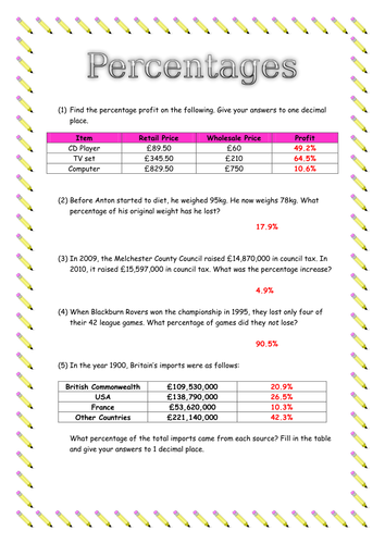Percentages - Free maths worksheets and other resources - Worksheets ...