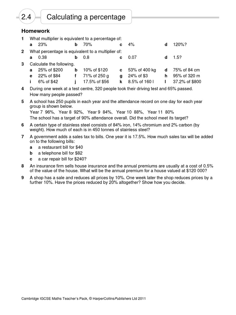 Calculating Percentages of Amounts Homework (Grade E-D). | Teaching ...