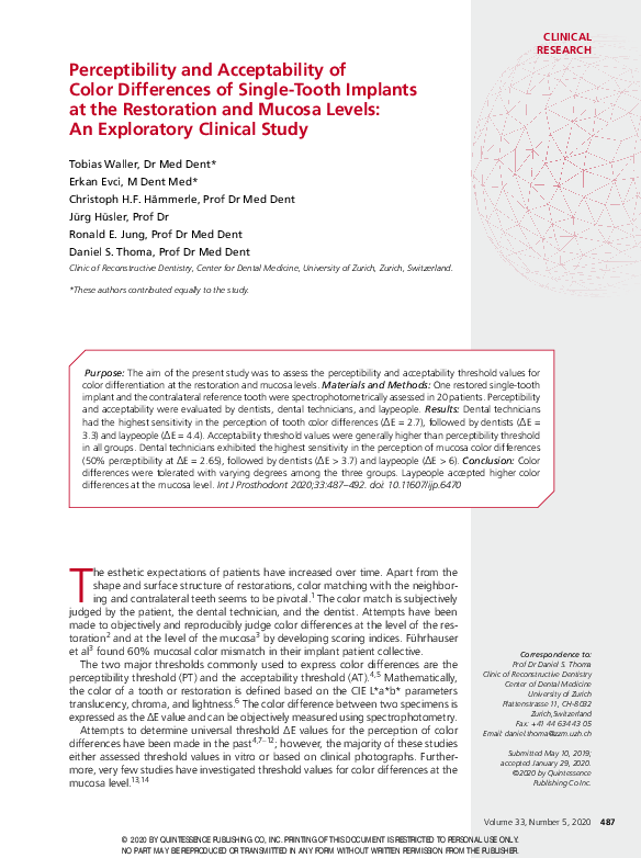 Significance of the Color Changes (ΔE 00 ) on the Acceptability ...