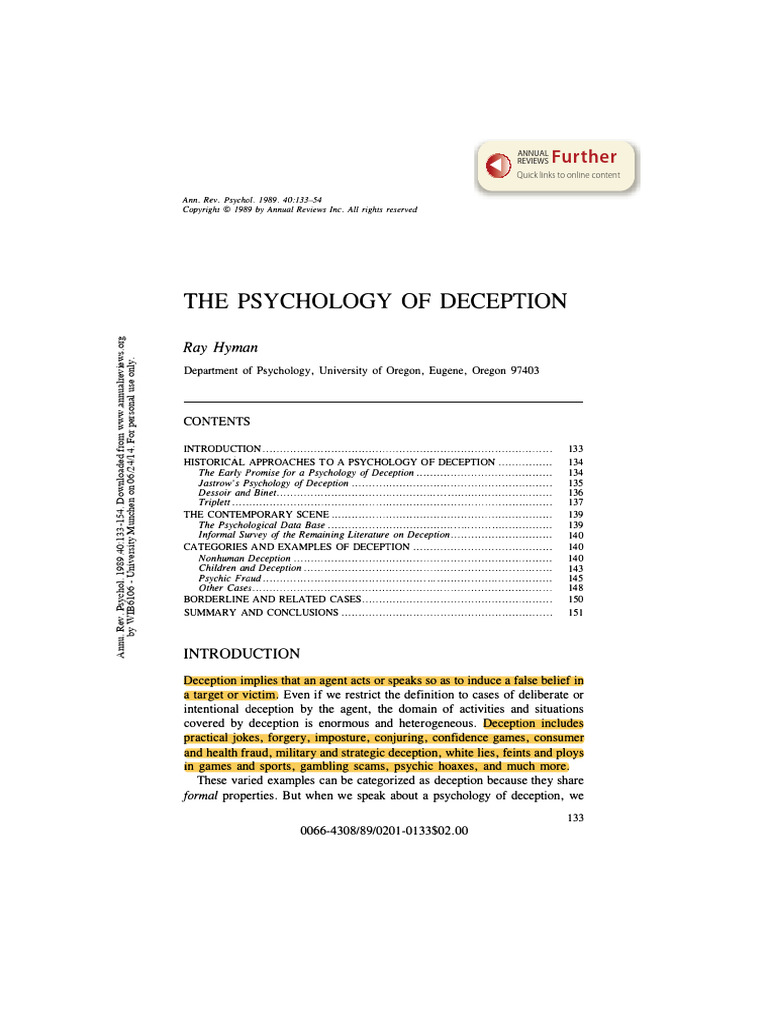 The Psychology of Deception | PDF | Magic (Illusion) | Perception