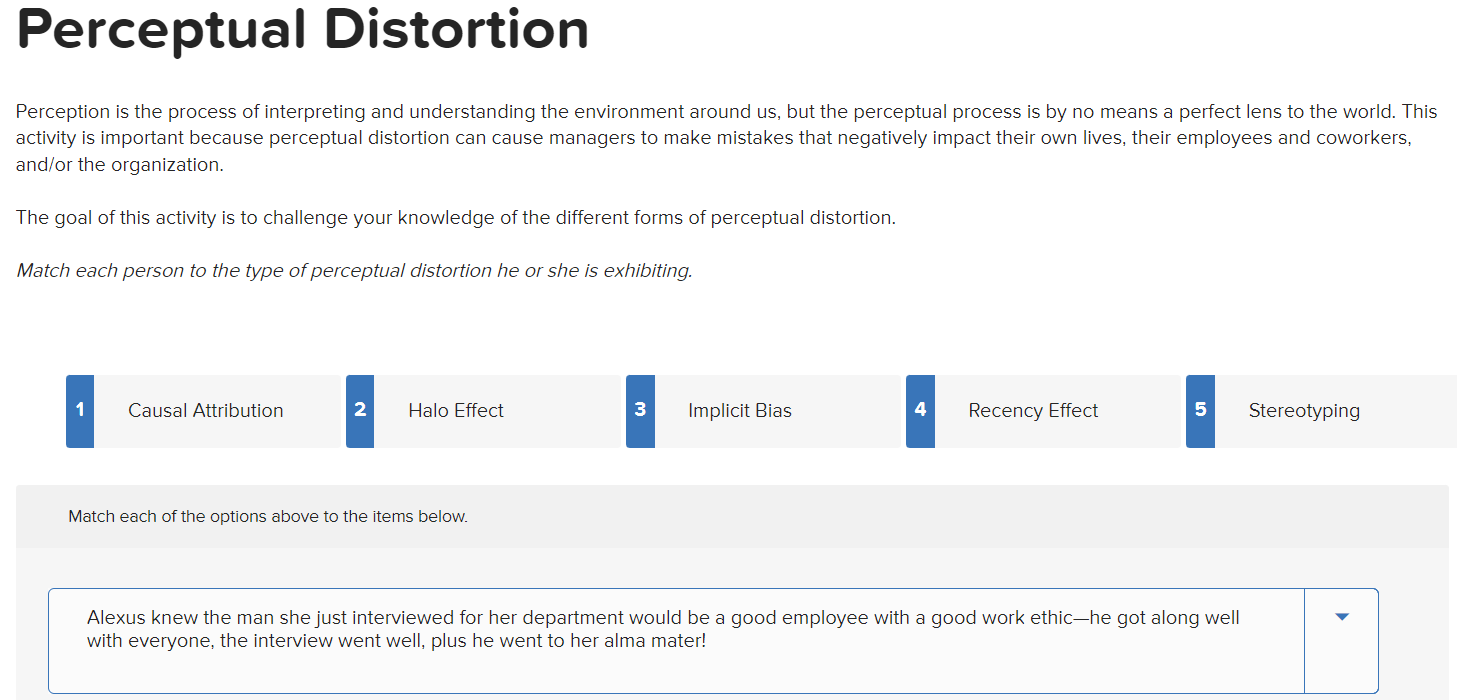 Discusses four types of perceptual distortions stereotyping, halo | DOCX