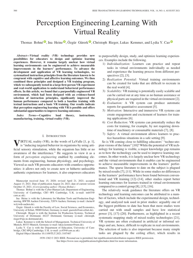 Perception Engineering Learning With Virtual Reality | PDF | Learning ...
