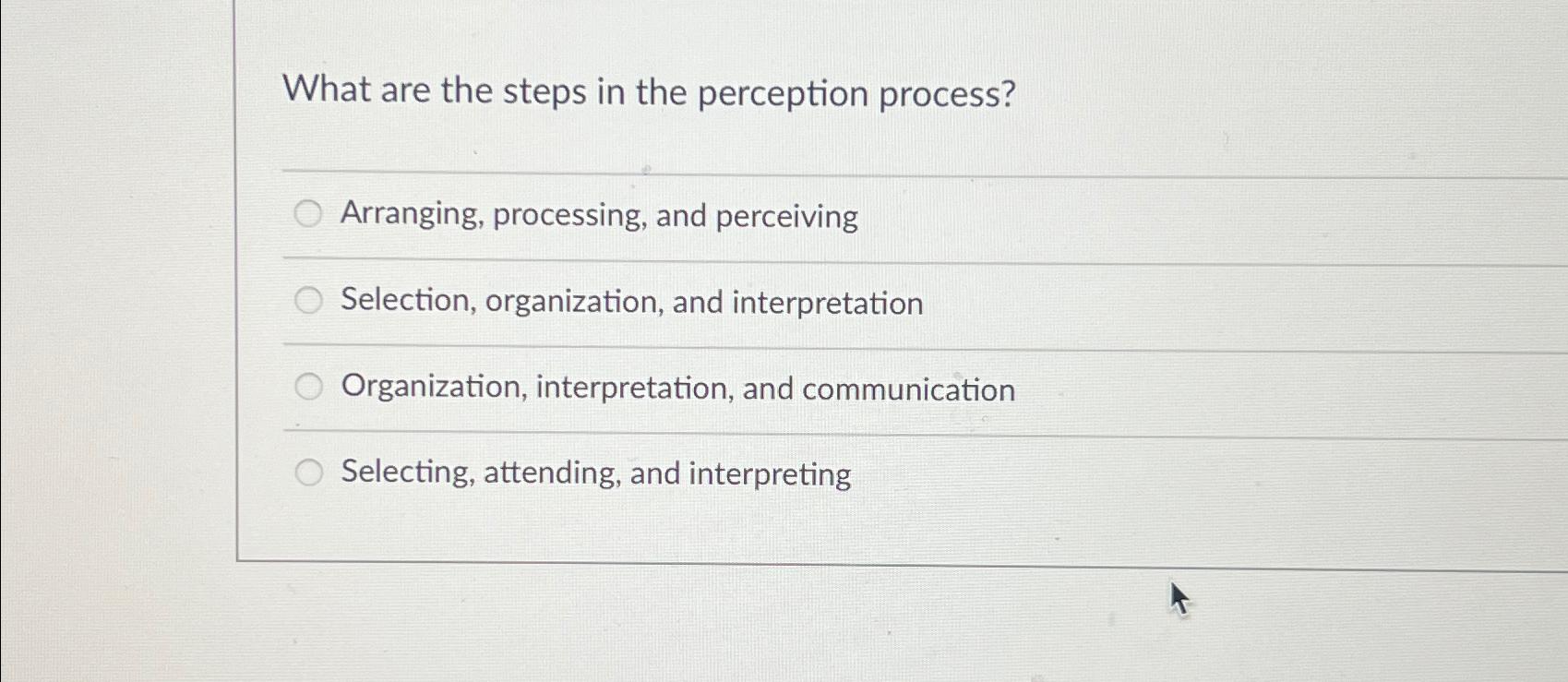 Solved What are the steps in the perception | Chegg.com