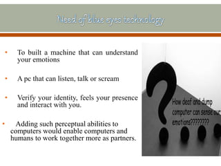 BLUE EYES TECHNOLOGY ( computational machines that have perceptual and ...