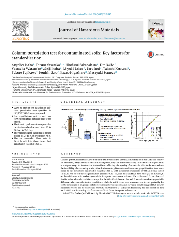 (PDF) Column percolation test for contaminated soils: Key factors for ...
