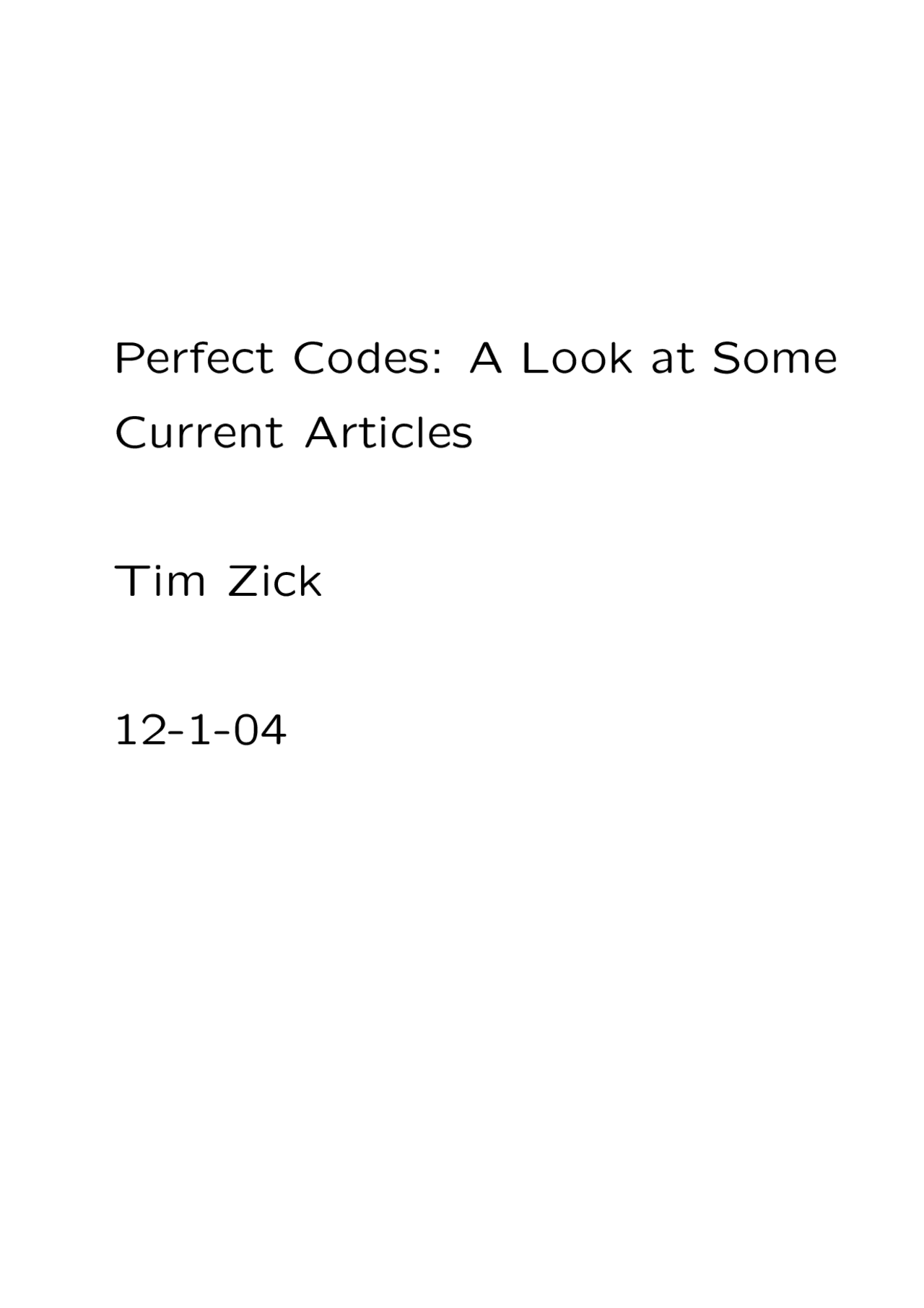 Perfect Codes: A Look at Some Current Articles - Lecture Slides | MATH ...
