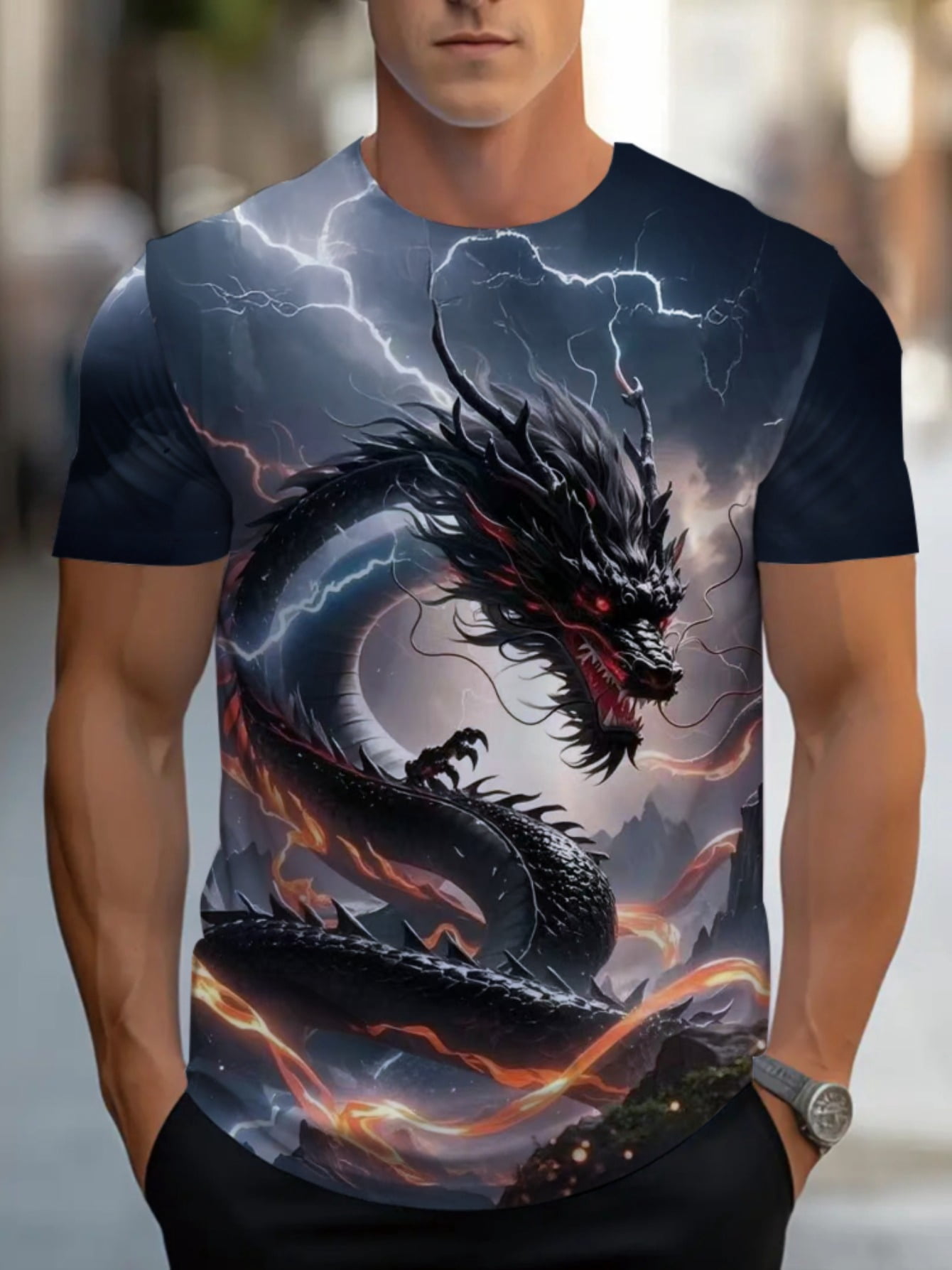 3D digital men's T-shirt with dragon pattern design and bright round ...