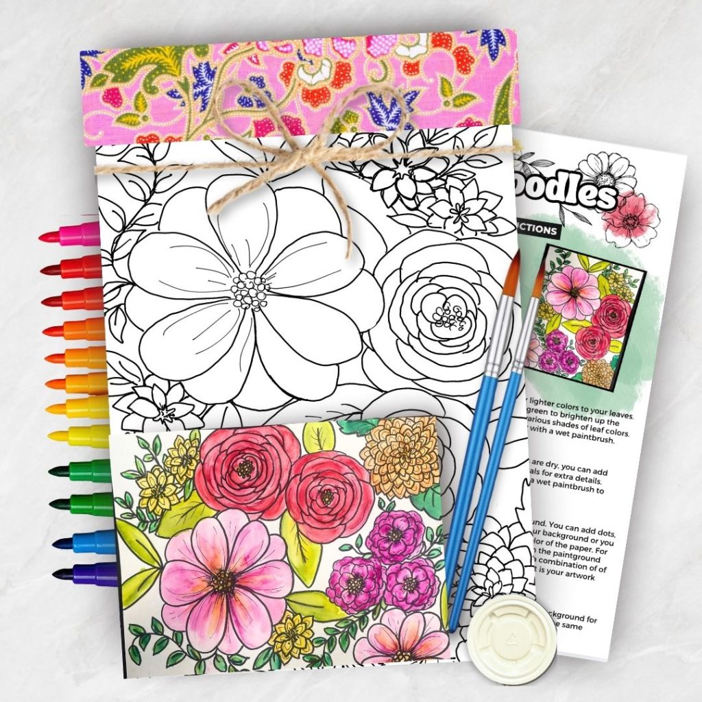 Flower Doodles – Personal Use Art Experience Art Kit - Forget Him Knot