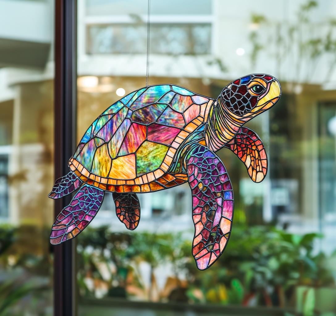 Sea Turtle Faux Stained Glass Suncatcher, Acrylic Window Hanging ...