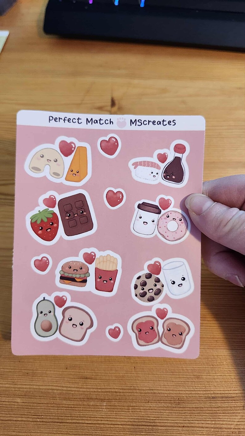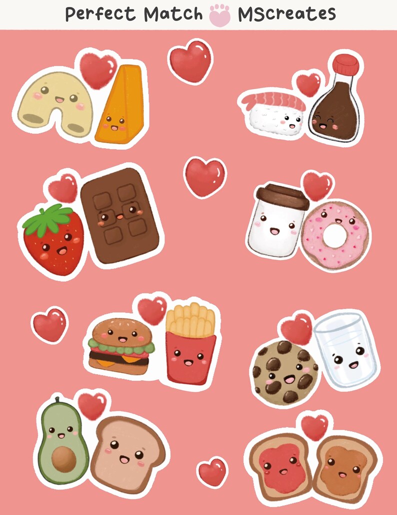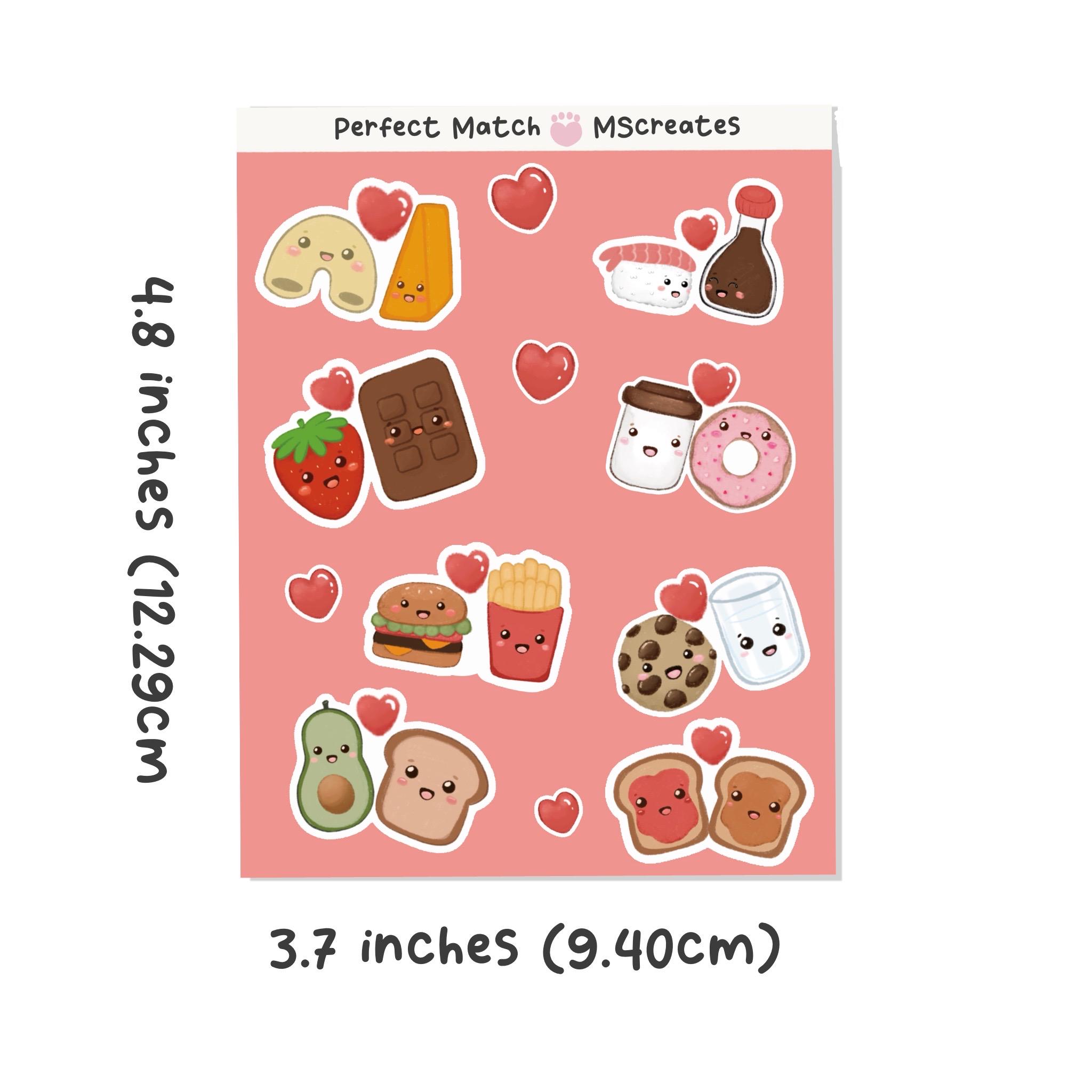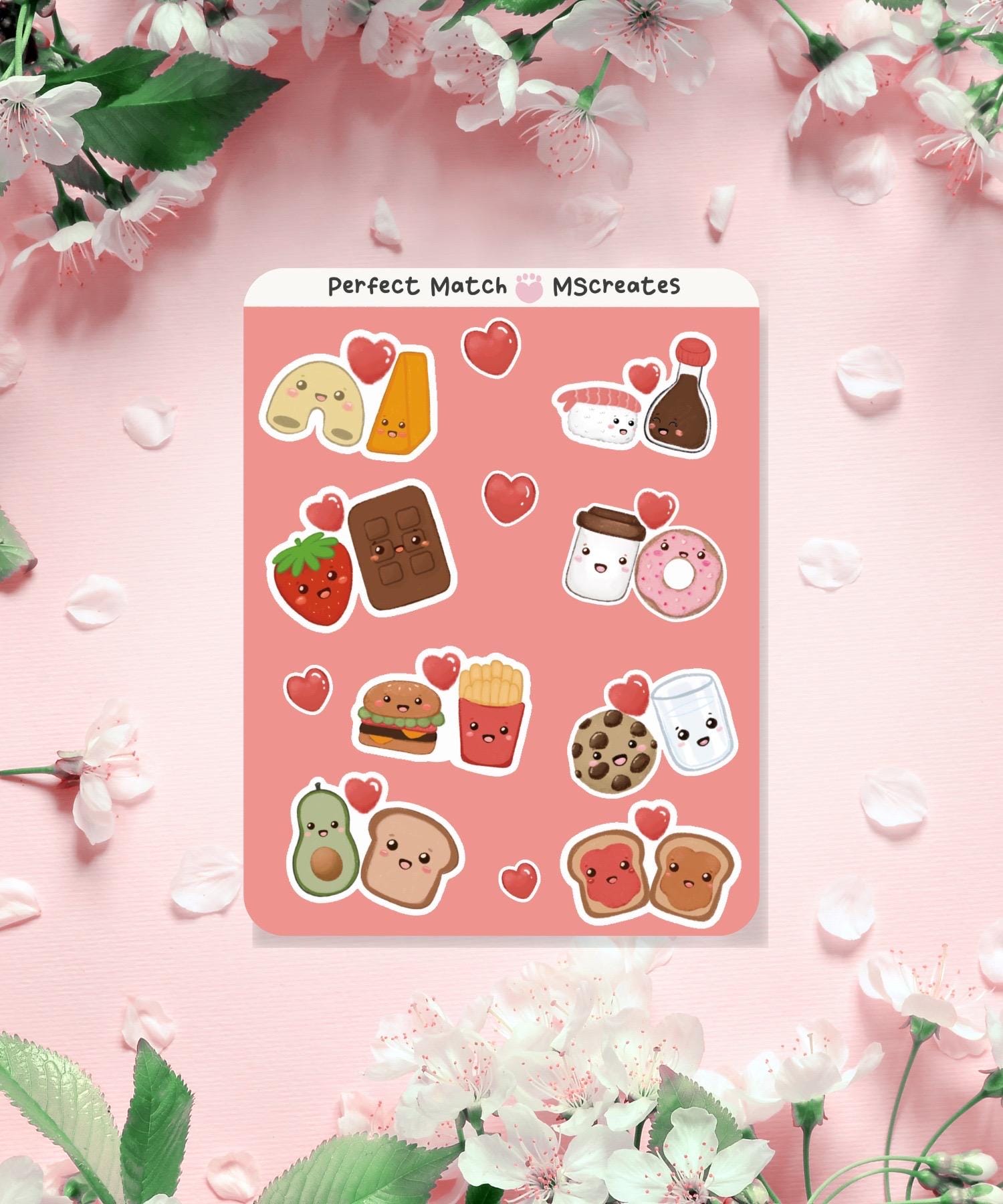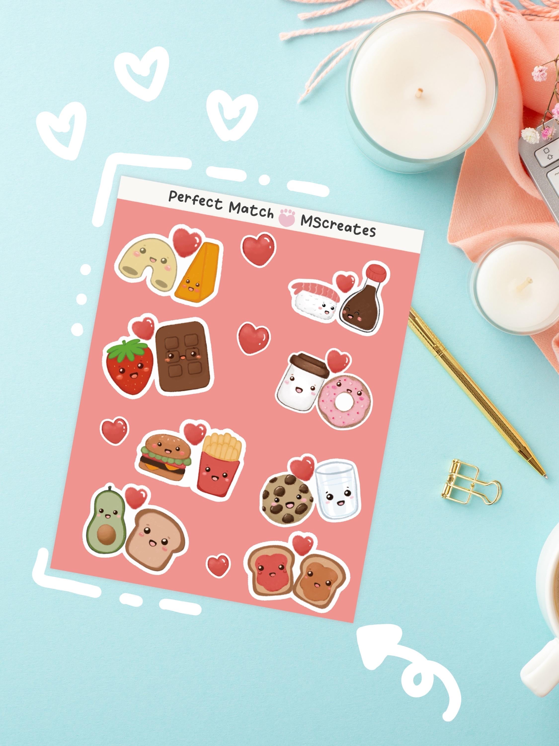 Perfect Match Sticker Sheet| Kiss-cut| Valentine| Vinyl Paper| Foodie ...