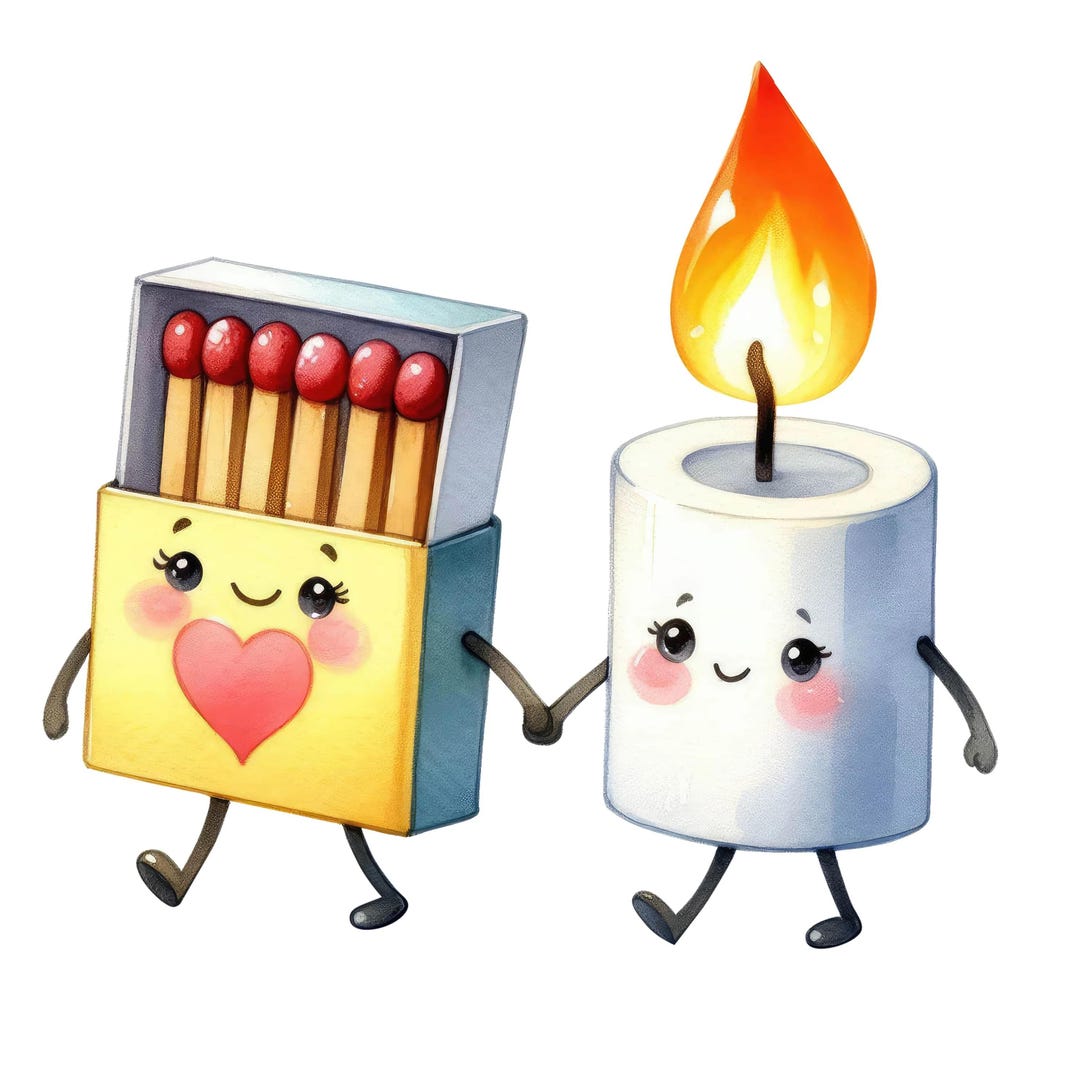 A Perfect Match Sticker, Matches With Heart Flame, Matchbox Love Pun ...