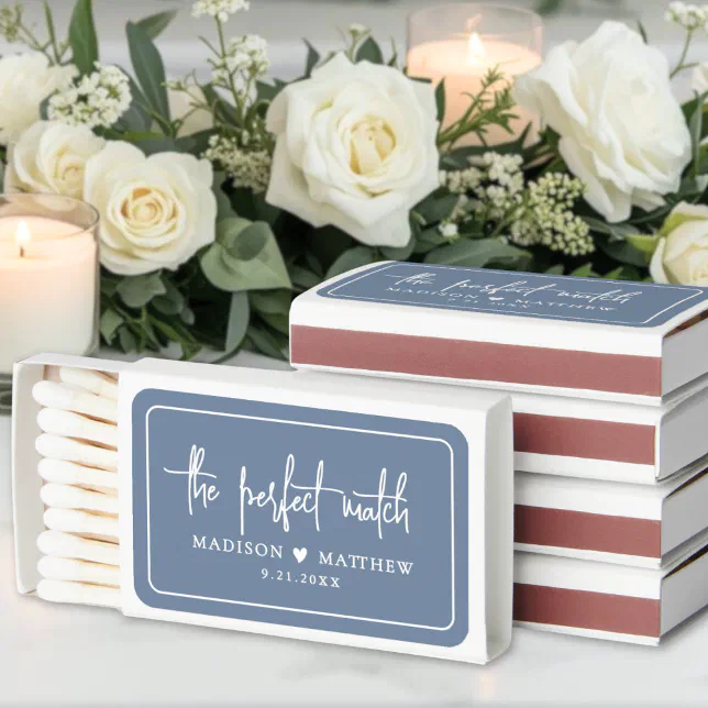 The Perfect Match Light Blue Wedding Matchbox | Zazzle