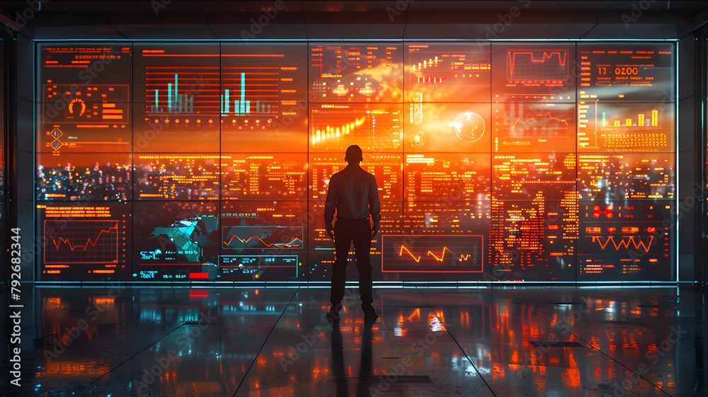 Data analyst working on dashboard with chart virtual screen. concept of ...