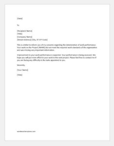 Letter of Concern for Poor Performance | Word & Excel Templates