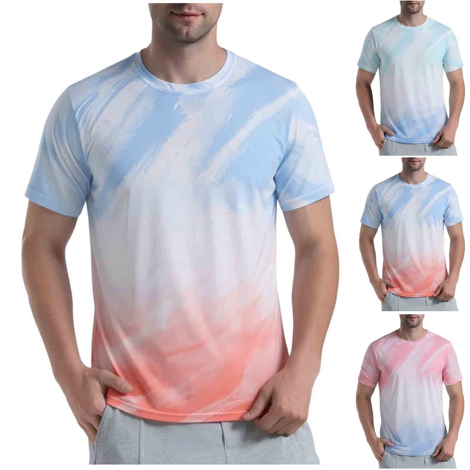 Afuyipoi Men's Performance Running Tee (M-5XL),Gradient Print Short ...