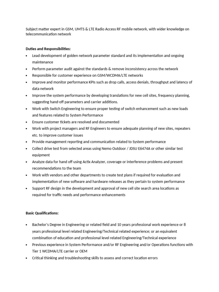 System Performance Engineer | PDF | Lte (Telecommunication) | Cellular ...