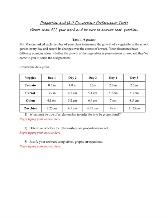 Solved Proportion and Unit Conversions Performance Tasks | Chegg.com
