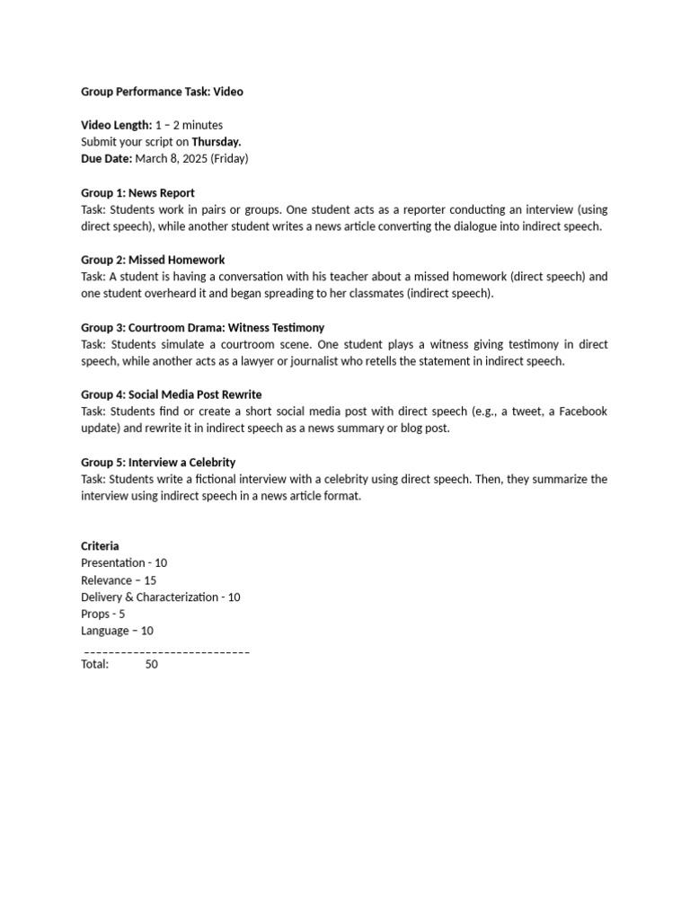 Performance Task Example and Activity Template | PDF | Narrative ...