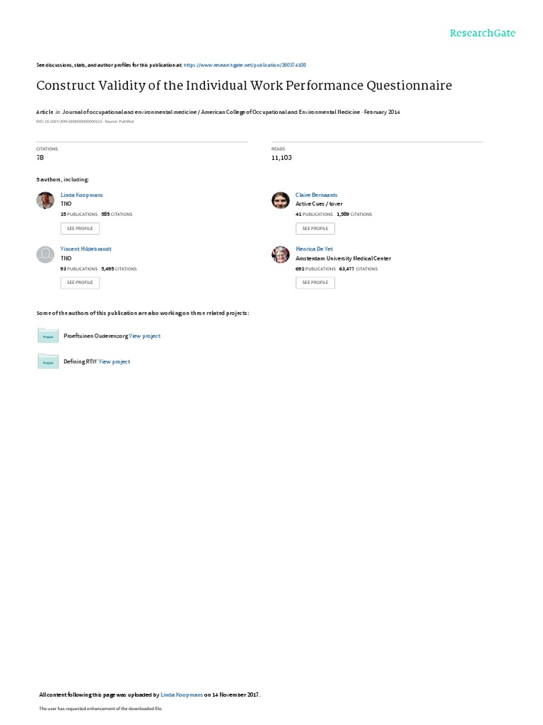 Validating the Individual Work Performance Questionnaire | PDF ...