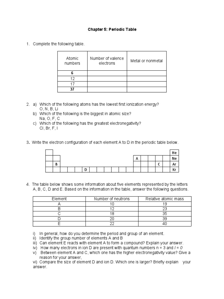 3.0 PERIODIC TABLE - NOTES & TUTORIAL Q's | PDF | Ion | Ionic Bonding