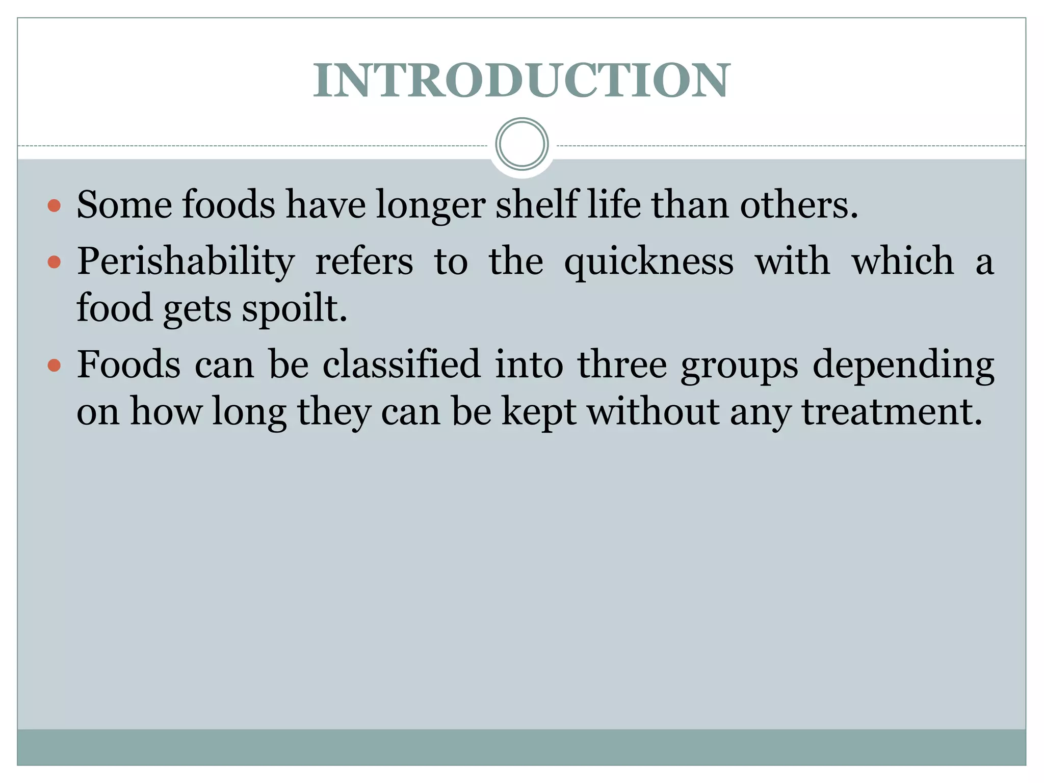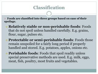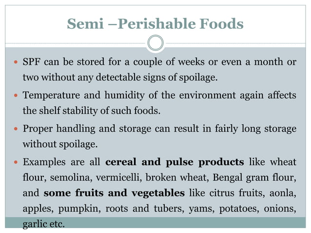 Types of food based on its perishability - DR KG/KCET | PPTX