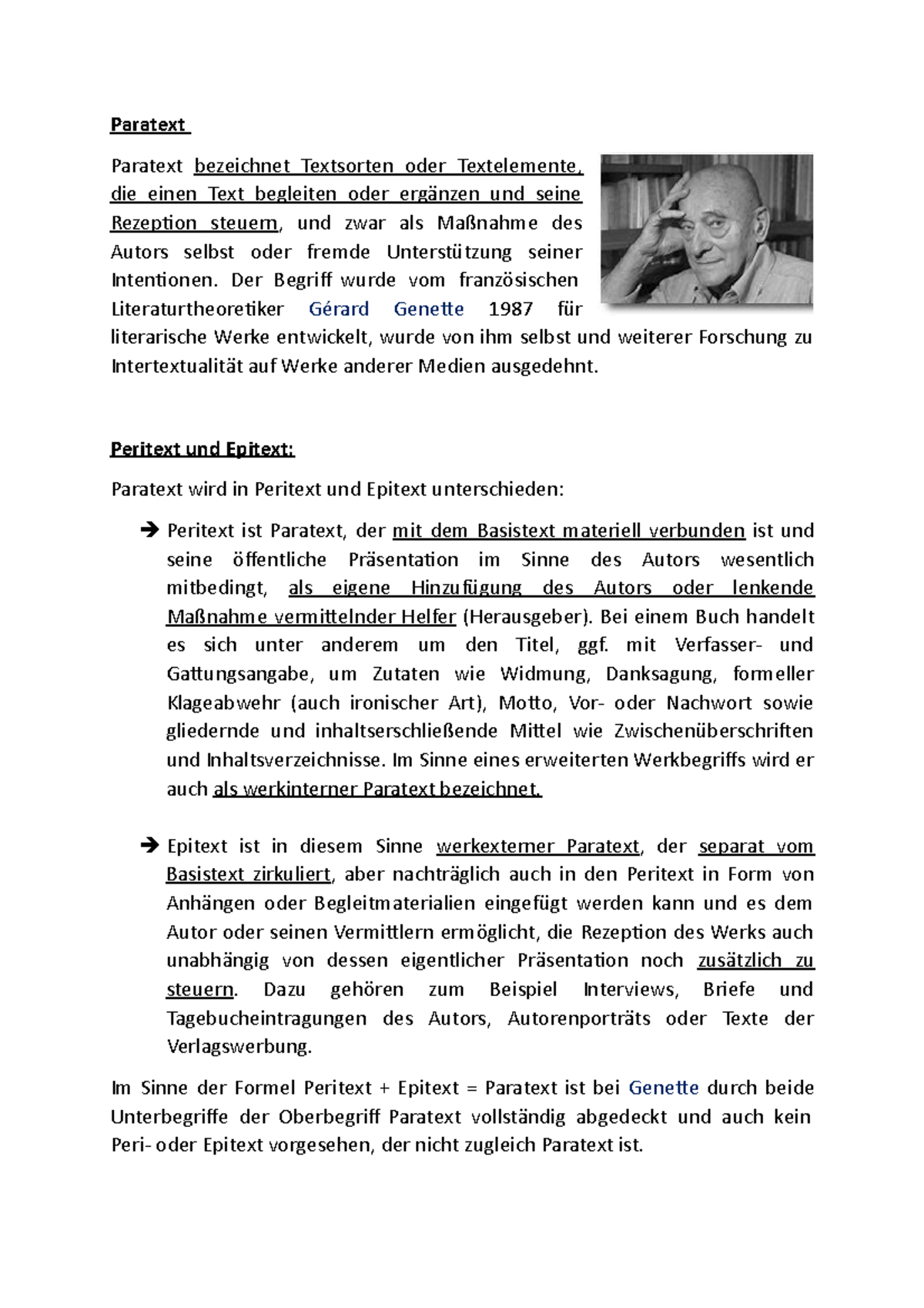 Paratext: Grundlagen und Unterscheidung von Peritext und Epitext - Studocu