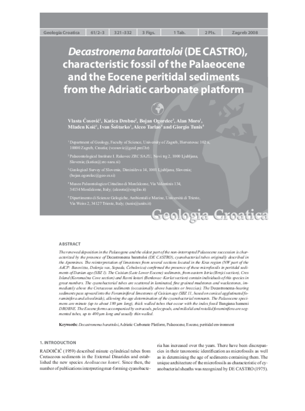 (PDF) Decastronema barattoloi (DE CASTRO), characteristic fossil of the ...
