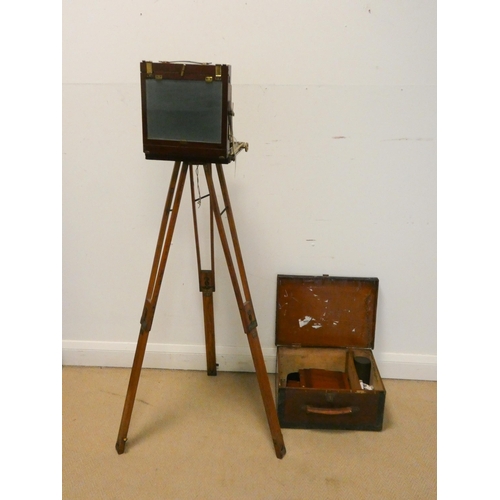 An Edwardian plate camera on mahogany tripod, lens signed Perken Son ...