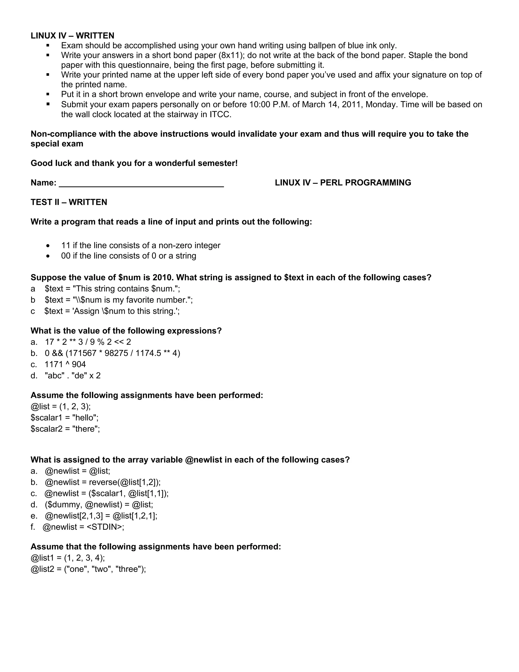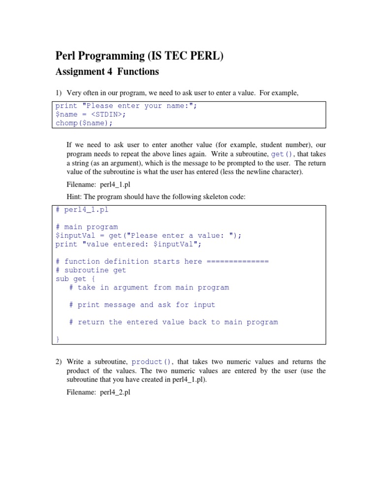 Perl Control Structures Assignment 2018 | PDF | Perl | C (Programming ...