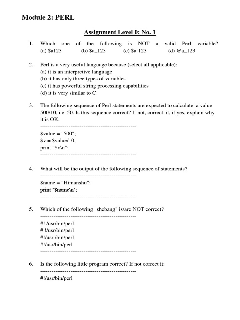 Perl Assignment Level 0-1 | PDF | Perl | Text File