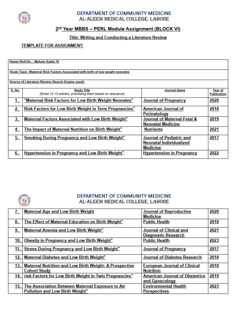 Lit Review - PERL Assignment 2nd Year 2 | PDF | Low Birth Weight ...