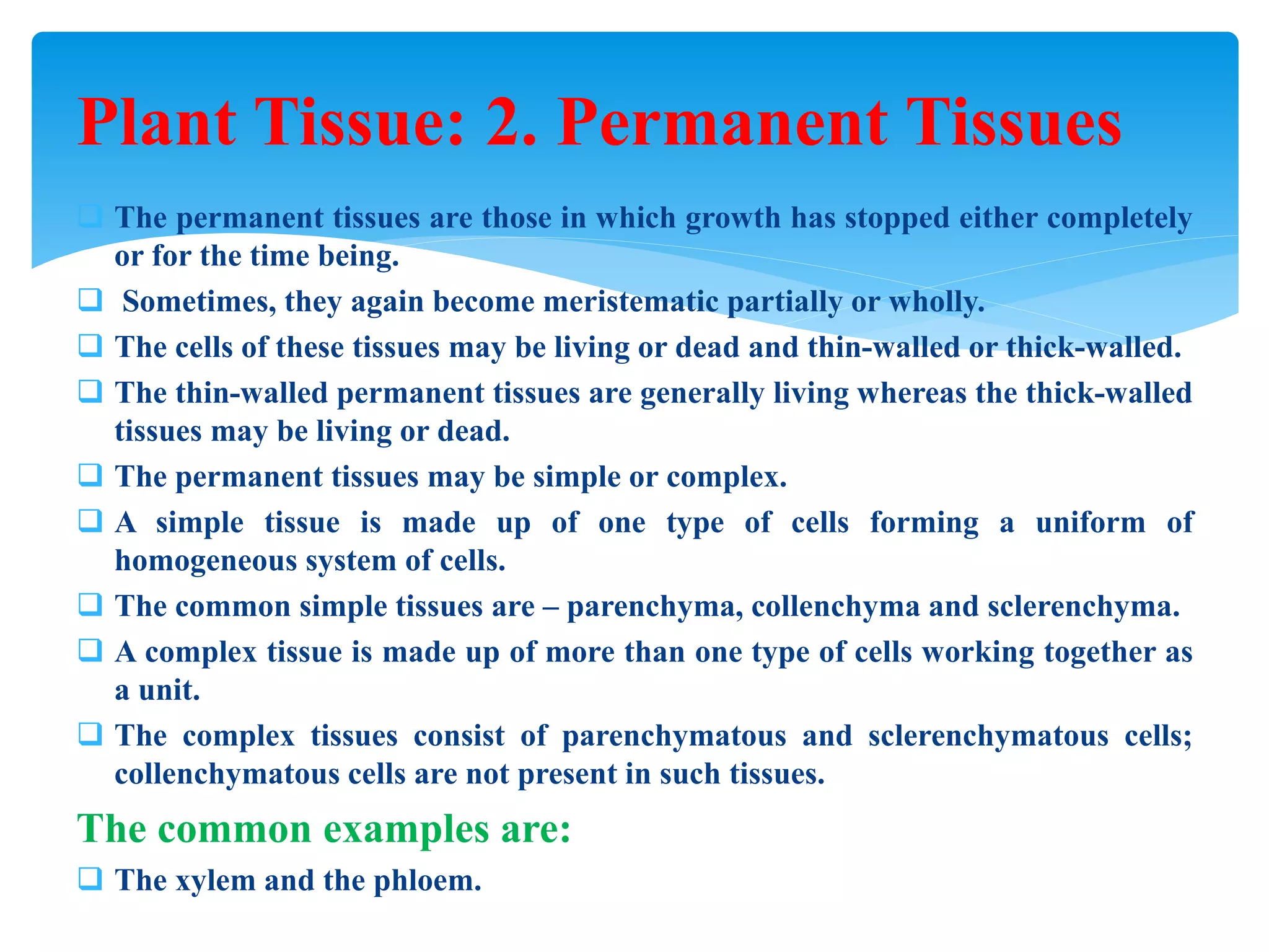 Plant tissues including meristematic tissue and permanent tissue | PPTX