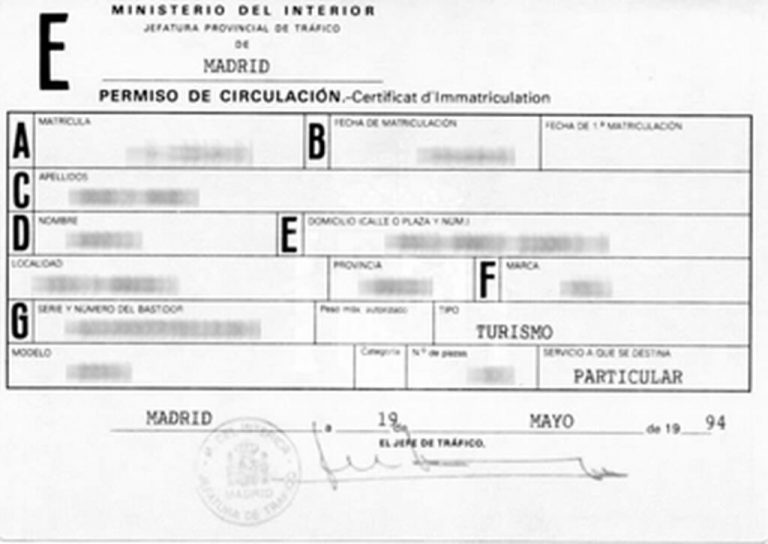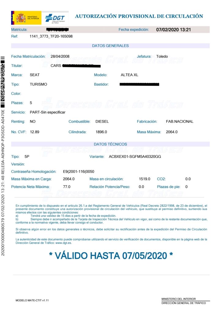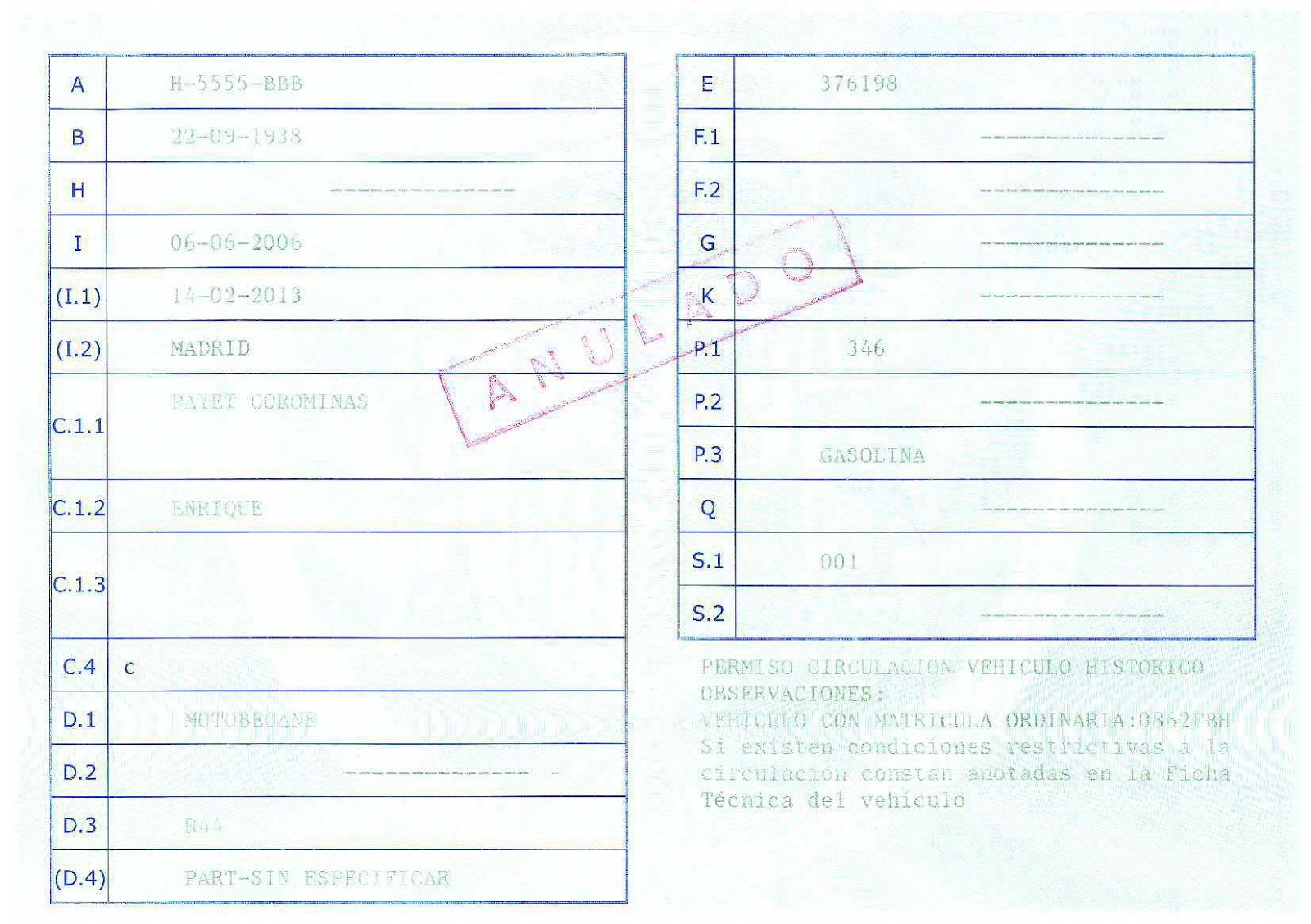 Ejemplo de Permiso de circulación – Desguaces Vigototal