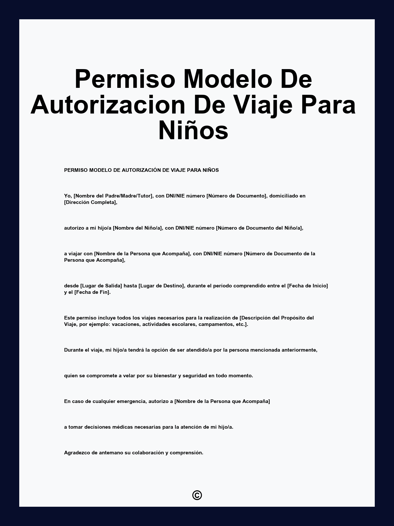 Permiso Modelo De Autorizacion De Viaje Para Niños