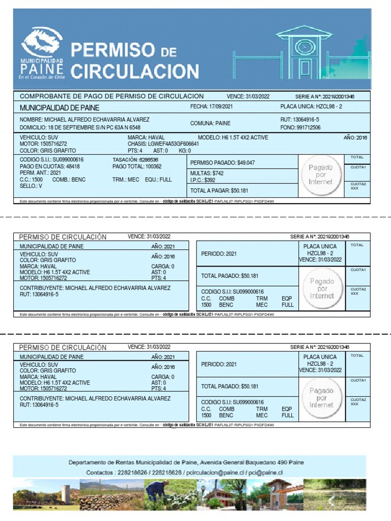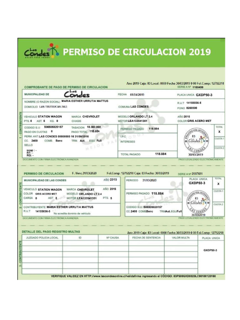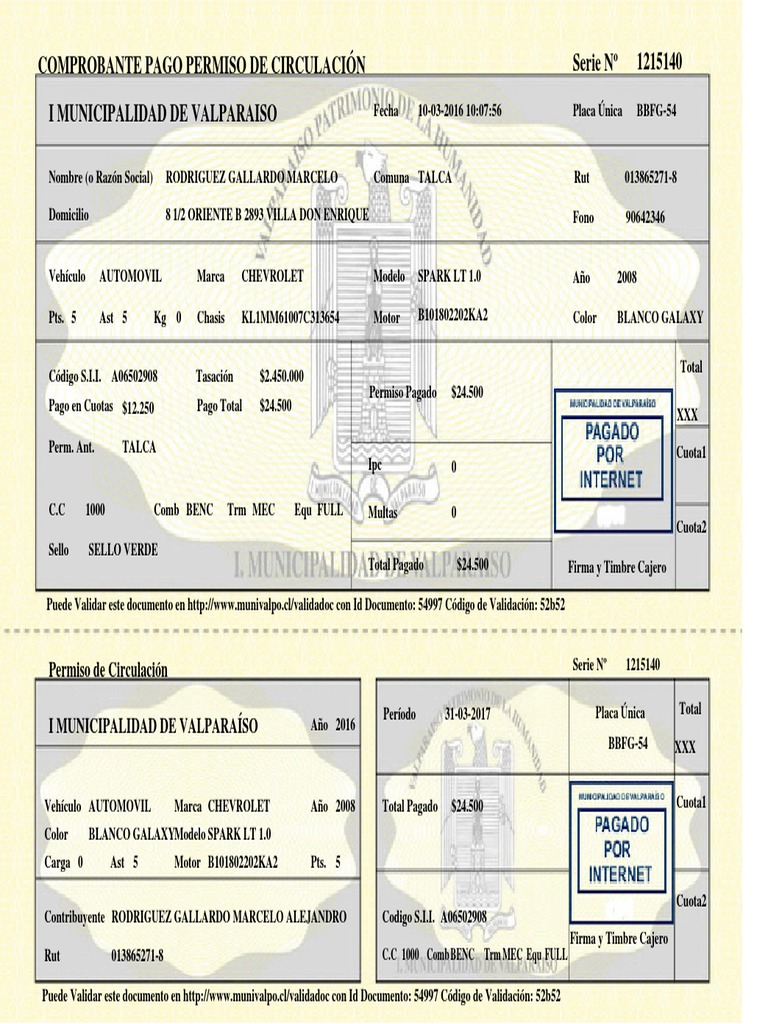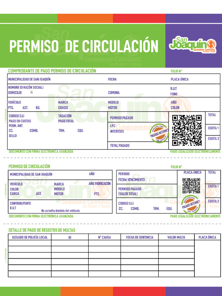 Permiso de circulación de chile - (El Bosque) editable en PDF ...